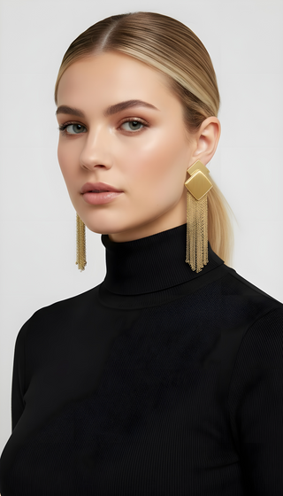 18K Gold Long Cascade Statement Earrings – Elegant Chain Drape Design