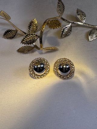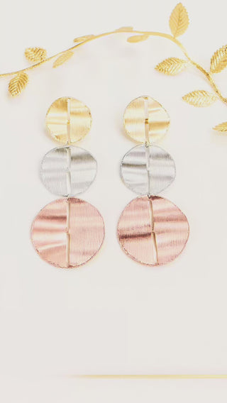 Tri-Tone Couture Disc Earrings — 18K Gold, White Gold & Rose Gold (One-of-a-Kind)